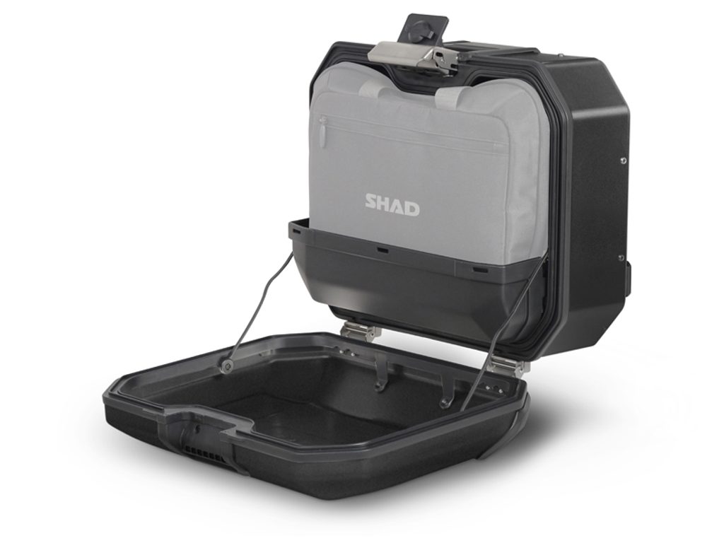 The complete set of cases SHAD TERRA BLACK includes black aluminum top case TR37 with a capacity of 37L, black aluminium left and right case TR36 with a capacity of 36L. The set contains everything you need to mount both suitcases to the motorcycle.