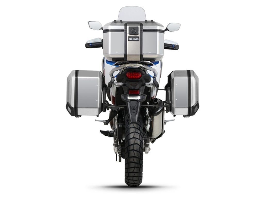 Complete set of black aluminum cases SHAD TERRA, 48L topcase + 36L / 47L side cases, including mounting kit and plate SHAD HONDA CRF 1100 Africa Twin