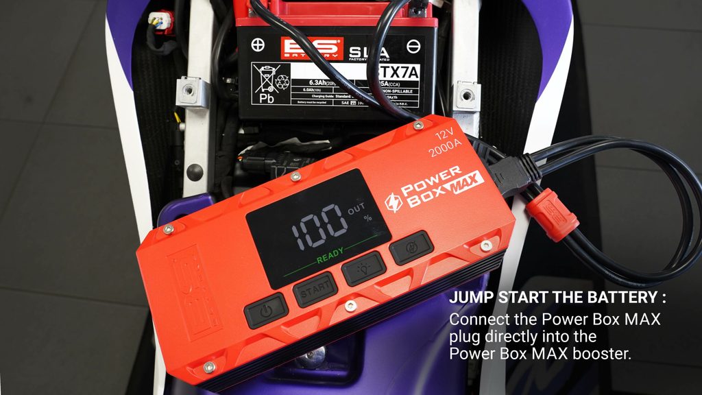 This connector is the ideal solution when your battery is hard to reach, hidden, or when using clamps is not possible. It provides a quick and secure way to either charge your battery with a charger or jump-start it using the Power Box MAX booster, thanks to its dual connection: an SAE plug and a dedicated Power Box Max plug.