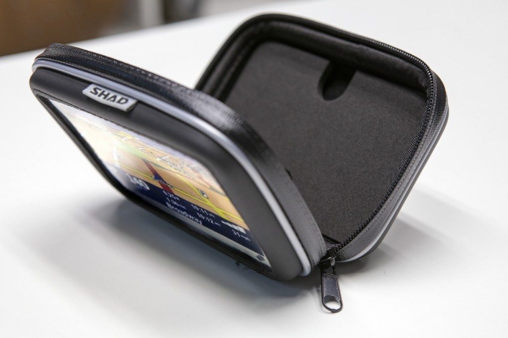 Your GPS is carried in an extremely sturdy, practical case whose interior is lined with knock-proof material. Depending on the version, the holder can be fixed either to the handlebar or the mirror simply and quickly, thanks to a practical, adjustable bracket. Since the base can be rotated 360°, you can position the screen at the visual angle that is just right for you. The waterproof case and zips enable the case to be used in any weather, and your touch screen display is completely functional through the special crystal film window.
