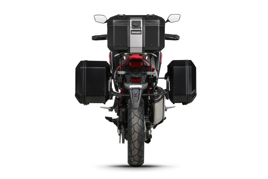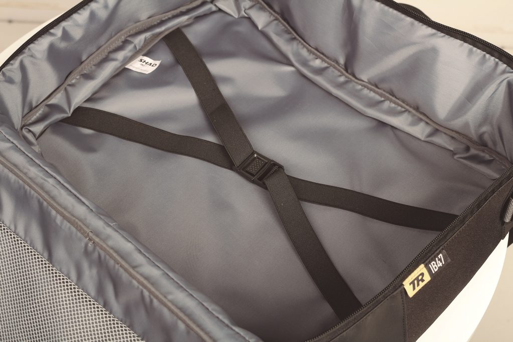 SHAD Terra panniers are designed to be used with the new 4P pannier mounting system and once mounted, offer a side opening system which gives easy and full view to all your belongings whilst keeping them in place with the parcel tray (which folds out of the way) and mesh restraint system.
